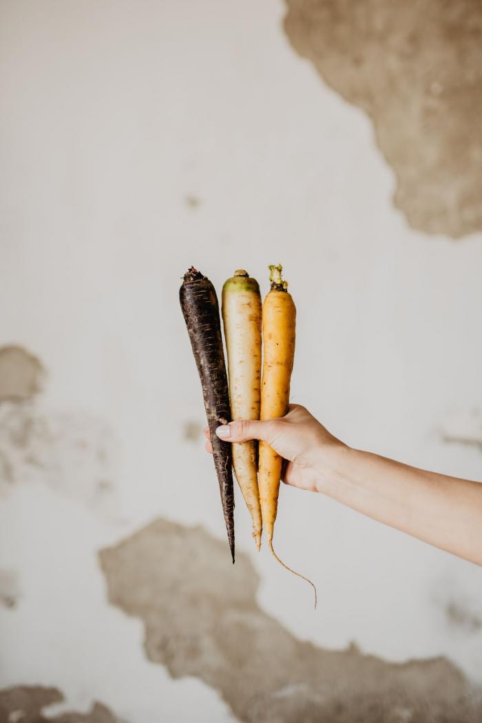 Szikszer Rozália termelő a paszternák, fehér répa, sárgarépa mellett különleges színes répákat is termel.